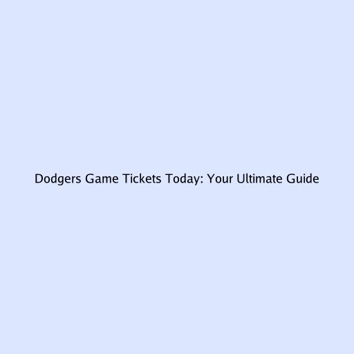 Dodgers Game Tickets Today: Your Ultimate Guide